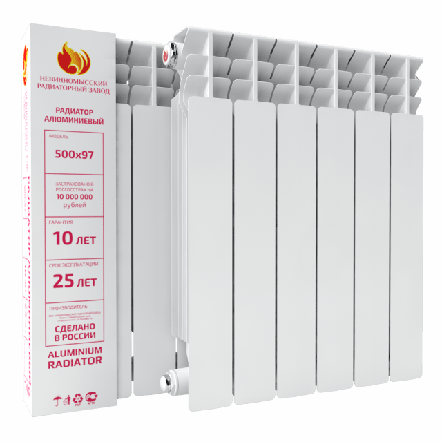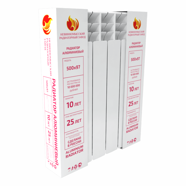 Радиатор алюминиевый НРЗ РА 500/100 предназначен для применения в качестве отопительного прибора автономных систем водяного отопления жилых, общественных и производственных зданий с температурой теплоносителя 110 °С и рабочим избыточным давлением до 1,6 МПа. Малая инерционность радиаторf обеспечивает эффективное терморегулирование для обеспечения максимального уровня комфорта пользователя. В качестве теплоносителя используется вода, значение рН которой находится в пределах 7 – 8. Секции алюминиевого радиатора НРЗ РА 500/100 выполнены из высокопрочного алюминиевого сплава по ГОСТ 1583-93 методом литья под давления. Готовое изделие имеет оребрение. Наличие боковых скошенных ребер создает для конвективного потока воздуха эффект диффузора, что повышает коэффициент теплоотдачи. кроме того, боковое скошенное оребрение создает промежуточную опору в продольном сечении вертикального канала секции. Это существенно повышает прочностные характеристики радиатора.