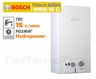 Газовые проточные водонагреватели Bosch серии Therm 6000 0 отличает автоматический режим работы от гидрогенератора. Технология Hydropower подразумевает выработку электроэнергии для автоматического розжига, посредством вращения гидрогенератора при наличии протока воды (привключении газовой колонки). Водонагреватели серии Терм 6000 оборудуются дополнительно ЖК дисплеем индикации температуры воды.