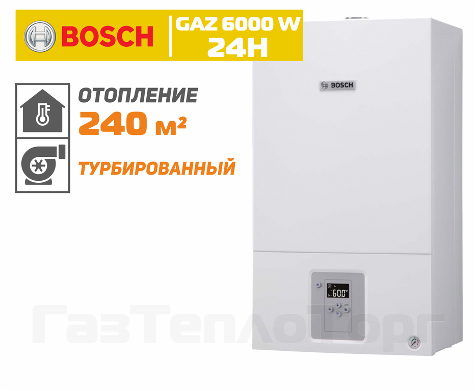 Настенные газовые котлы Bosch (Бош) серии GAZ 6000 W — современные, экономичные и надежные отопительные аппараты с принудительным отводом продуктов сгорания, разработанные специально для российских условий. Эта модель выделяется высоким качеством, доступной ценой и наличием запасных частей во всех регионах РФ. Котел неприхотлив к перепадам давления газа и напряжения в электросети.