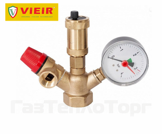 Группа безопасности Vieir устанавливается в системе отопления для визуального контроля за давлением в системе, предохранения системы от избыточного давления и для сброса лишнего воздуха.