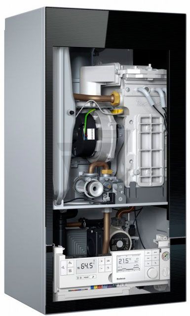 Настенный конденсационный котел Buderus Logamax Plus GB172-30i K - идельно подойдет для отопления загородных и многоквартирных домов площадью до 300 квадратных метров. Встроенный пластинчатый теплообменник обеспечит беспрерывную подачу горячей воды в бытовых нуждах. Корпус выполнен из ударопрочного стекла черного цвета.