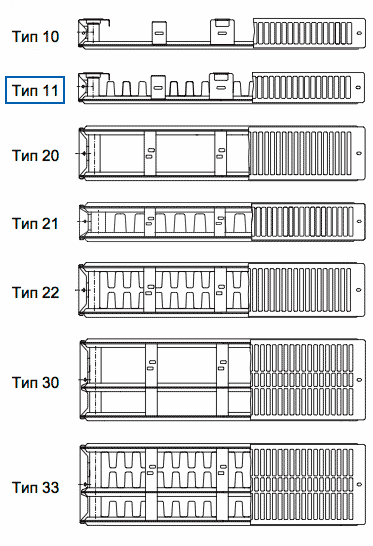 В комплектацию радиаторов Buderus уже входят воздухоотводчик и заглушка, не нужно докупать монтажный комплект. Экологичная окраска и травмобезопасные края делают возможным монтировать радиаторы в лечебных и детских учреждениях. Радиаторы типов 10, 20 и 30 легко содержать в чистоте, чего не скажешь о секционных с их многочисленными ребрами. Поставляется 7 типов (10, 11, 20, 21, 22, 30, 33), 12 длин (400 - 2000 мм) и 5 высот (300 - 900 мм).