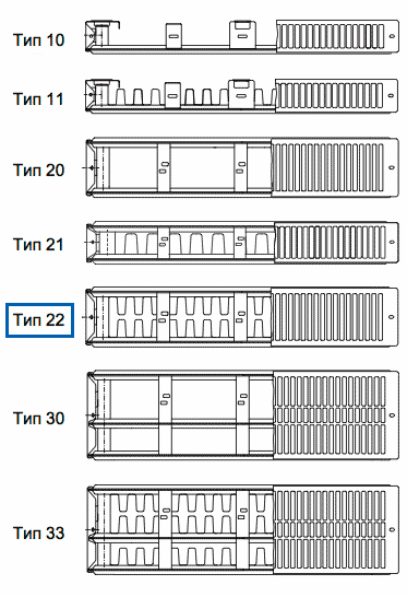 В комплектацию радиаторов Buderus уже входят воздухоотводчик и заглушка, не нужно докупать монтажный комплект. Экологичная окраска и травмобезопасные края делают возможным монтировать радиаторы в лечебных и детских учреждениях. Радиаторы типов 10, 20 и 30 легко содержать в чистоте, чего не скажешь о секционных с их многочисленными ребрами. Поставляется 7 типов (10, 11, 20, 21, 22, 30, 33), 12 длин (400 - 2000 мм) и 5 высот (300 - 900 мм).