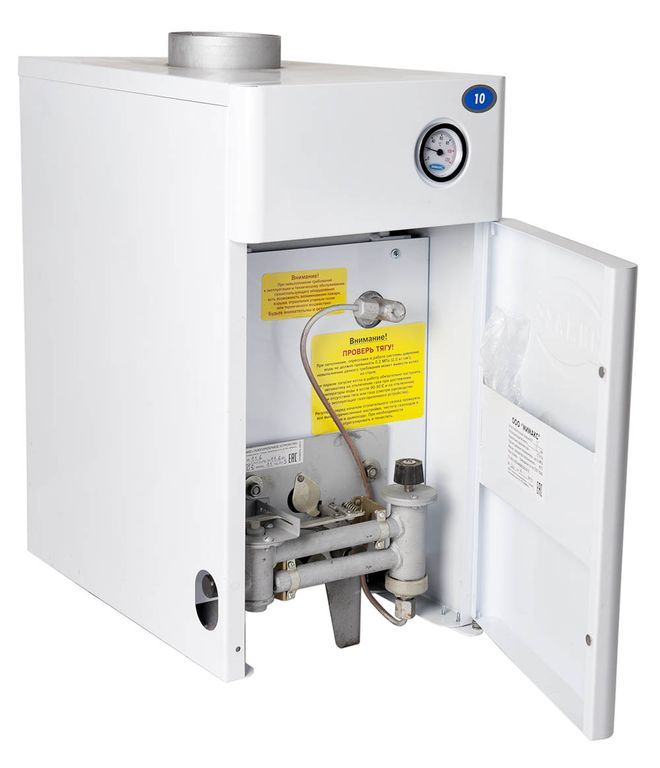 Мимакс КСГ-10 напольный газовый котел для отопления жилых домов площадью до 100 м², для которого предусмотрен стационарный дымоход.