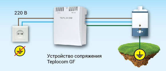 Устройство сопряжения Teplocom GF для подключения газового котла к сетям переменного тока без заземления. Мощность нагрузки — 200 ВА. Устраняет проблемы с некачественным заземлением — паразитные токи и наводки, напряжение и помехи по «земле» — «грязная земля». Адаптация котла для работы с автономными генераторами. Если автоматика котла постоянно «уходит в ошибку», Teplocom GF — для вас!